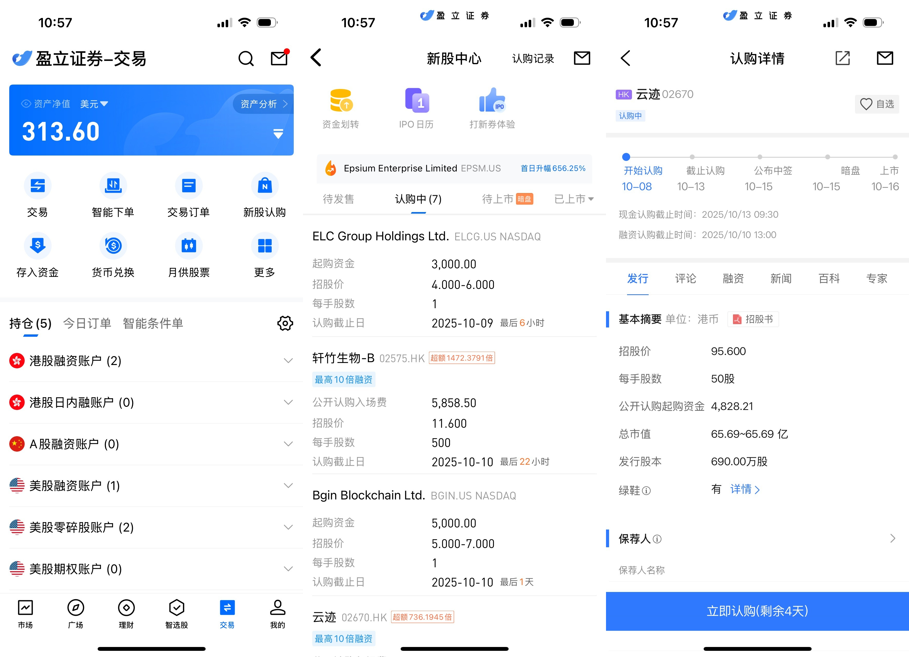 uSMART HK App 设有 IPO 中心,提供独家优惠,客户可在 App 即时认购公开发售之新股。登入 uSMART HK App 后,点选右下角「交易」,进入「新股认购」,选择云迹后点击「公开认购」,填写认购数量并提交订单即可。