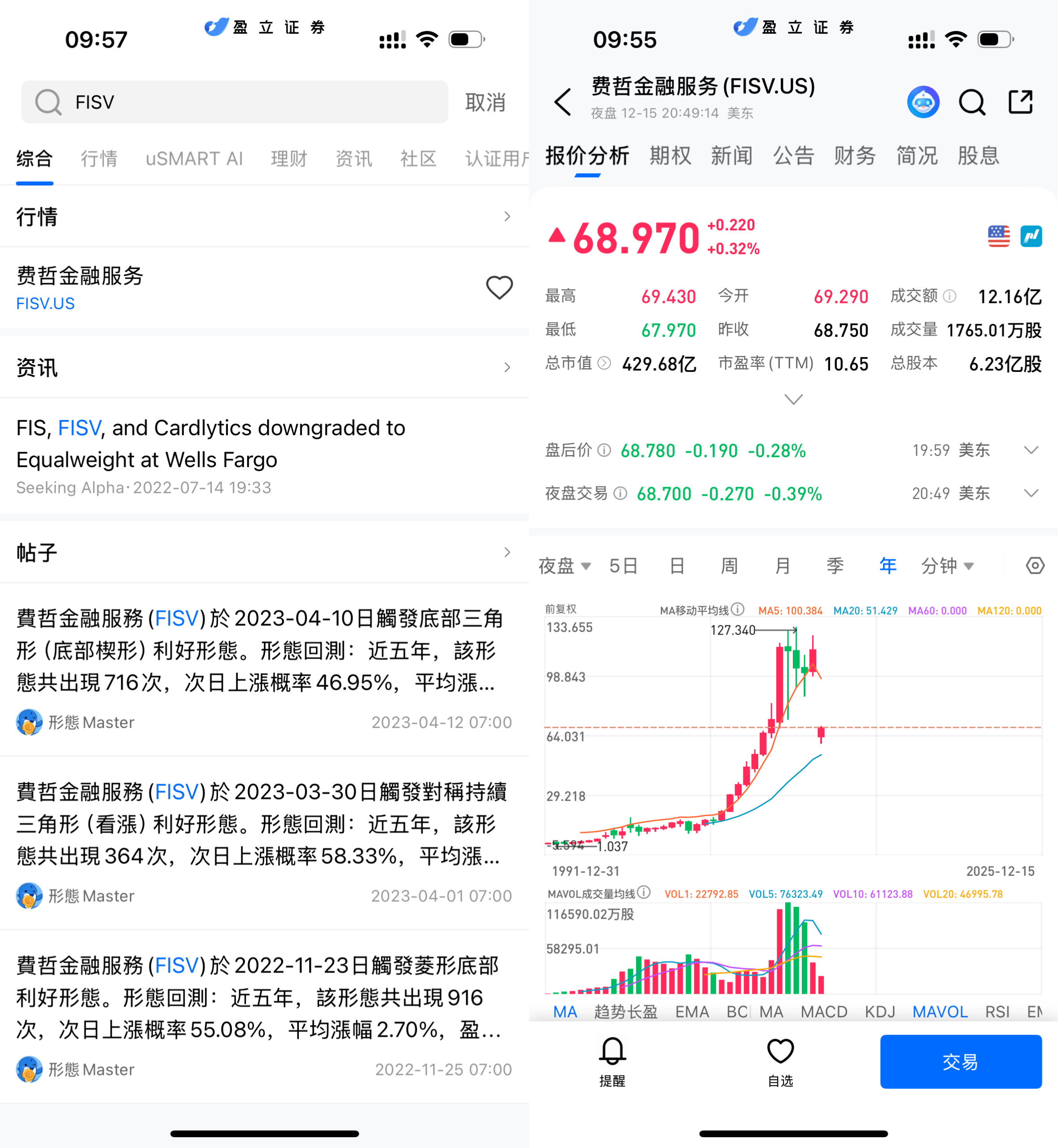 登入 uSMART HK APP 后,于页面最右上方点击「搜索」,输入标的代码(FISV.US)并进入详情页,了解交易详情与历史走势。点击右下角「交易」,选择交易类型,最后填写交易条件后送出订单即可。