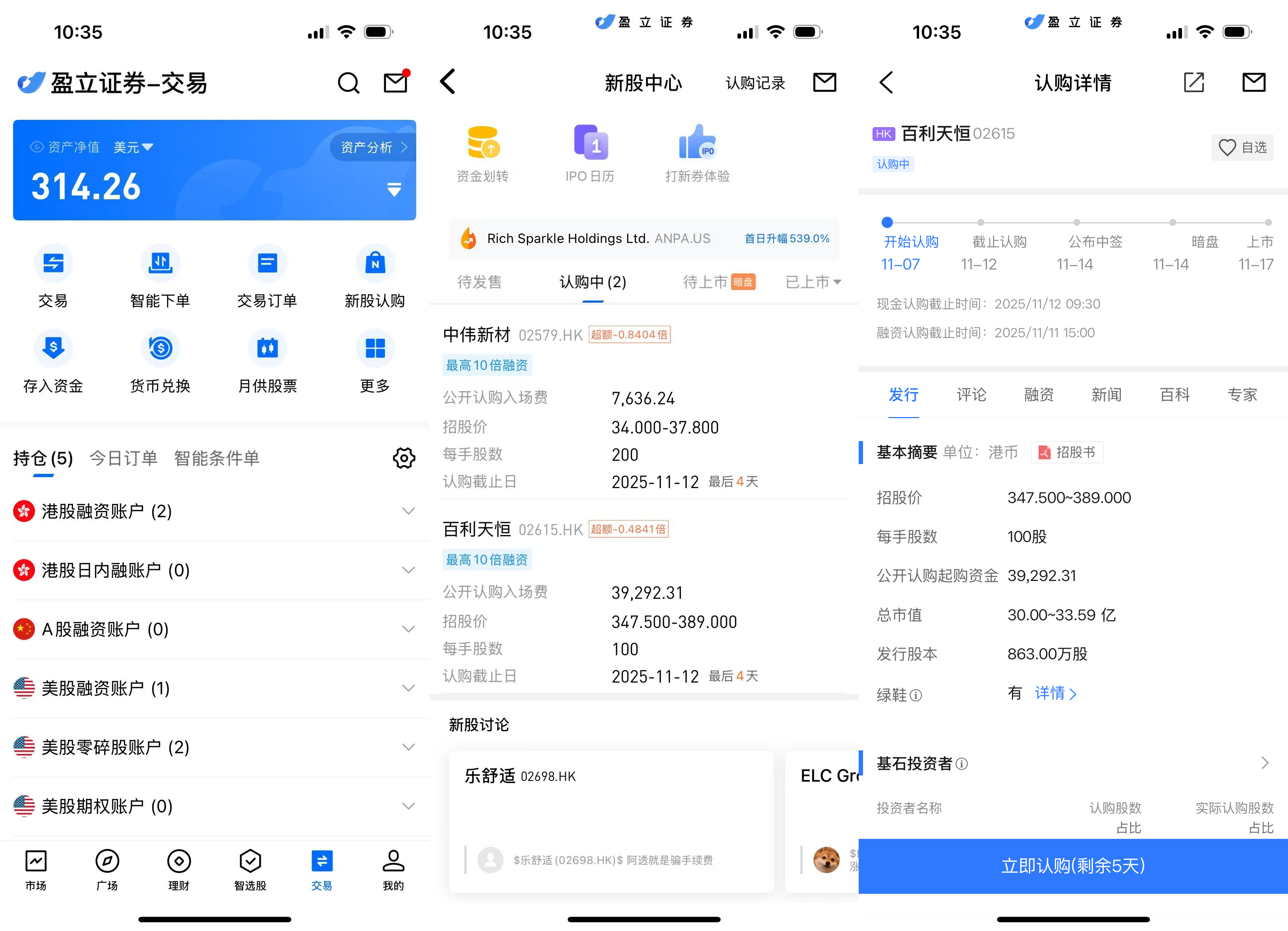 uSMART HK App 设有 IPO 中心,提供独家优惠,客户可在 App 即时认购公开发售之新股。登入 uSMART HK App 后,点选右下角「交易」,进入「新股认购」,选择百利天恒后点击「公开认购」,填写认购数量并提交订单即可。