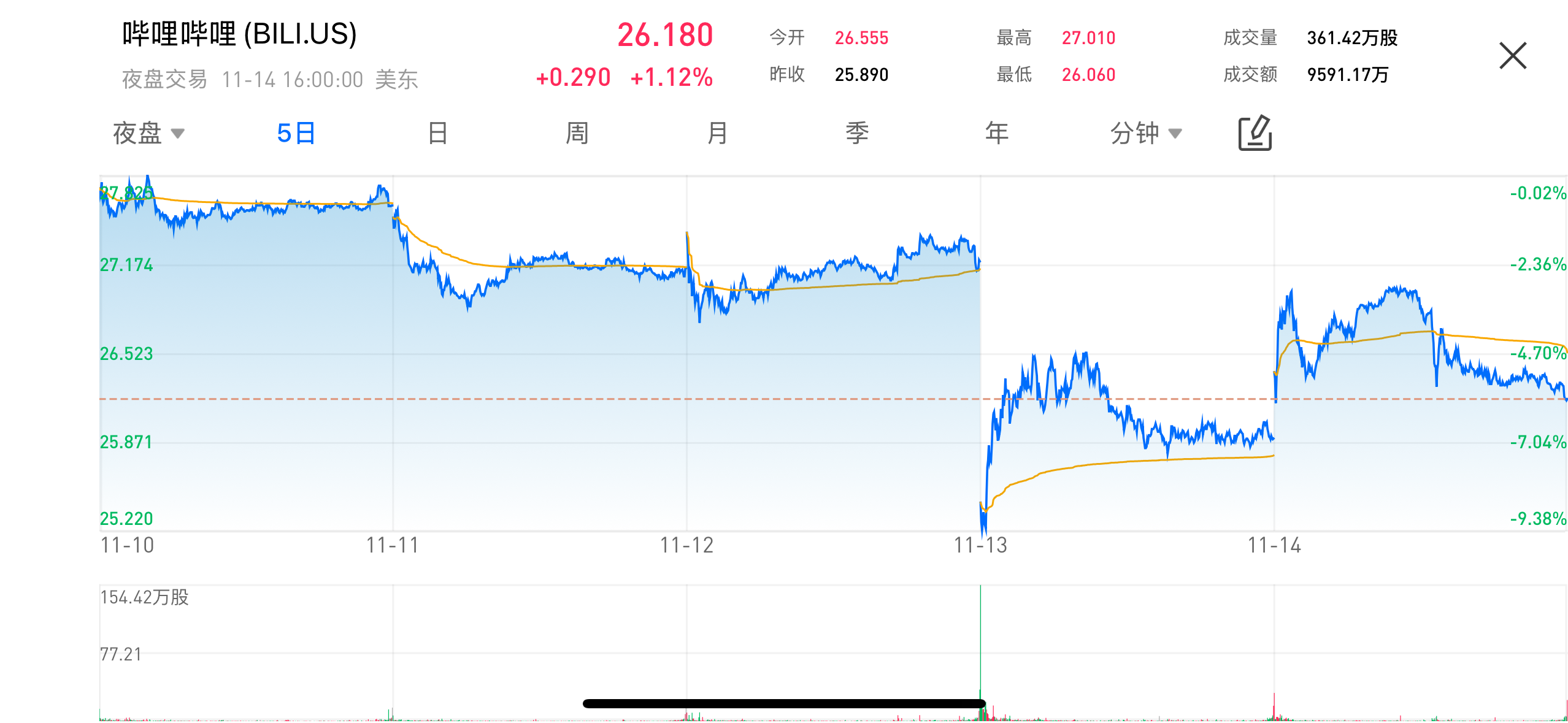 哔哩哔哩(Bilibili Inc.,Nasdaq:BILI)于 2025 年 11 月 13 日发布截至 9 月 30 日的第三季度财报。尽管其股价近期有所下跌,目前约为美元 26.18 元 ,但财报显示公司在用户增长与商业化变现方面取得显著进展,成功实现季度净利润转正,展现出向规模化盈利迈进的信号。