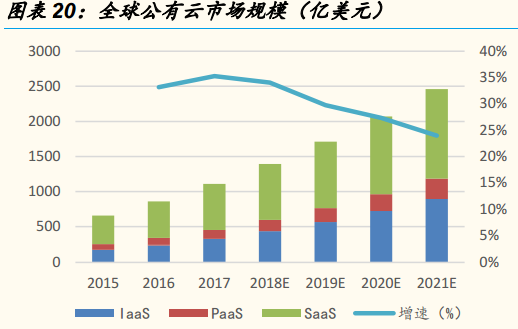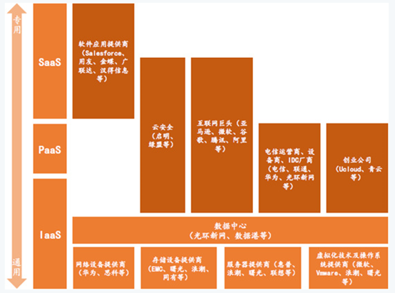 整个云服务市场,可以分为三大块——SaaS(软件应用服务商)、PaaS(平台服务商)、IaaS(虚拟基础供应商)。