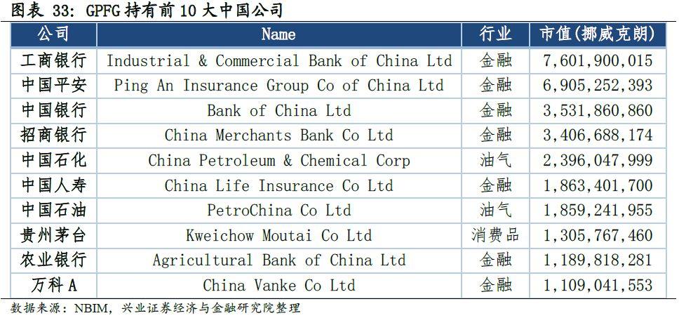 ★ GPFG投资中国:重仓金融+消费,散投新兴成长。