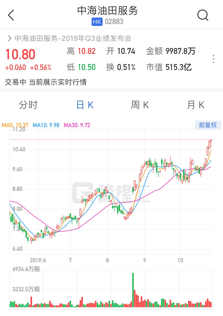 瑞银报告指,受第二季业绩好过预期所支持,中海油服(2883.HK)