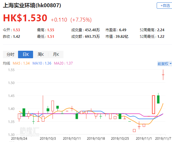 花旗:上调上海实业环境(0807.HK)目标价至1.95港元 维持“买入”评级