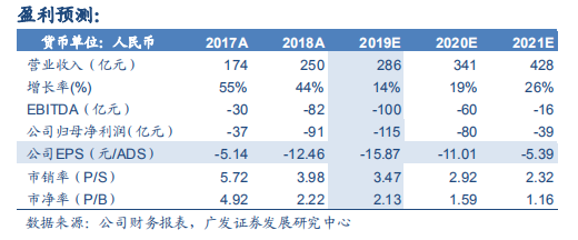 投资建议:考虑到广告收入下降幅度较大,我们调整公司的2019-2020年预测营业收入至286亿和341亿元,同比增长14%和19%。归母净利润分别为-115亿元和-80亿元。中长期来看,公司在长视频网站的竞争中已经取得了一定的优势,特别是在头部内容和会员上有望保持第一名的位置,逐步向产业链上游拓展,培养自身的制作力量。参考可比公司平均估值水平,给予公司对应2019年收入约4X左右的PS估值,对应合理价值为22.49美元/ADS,仍维持“买入”评级。