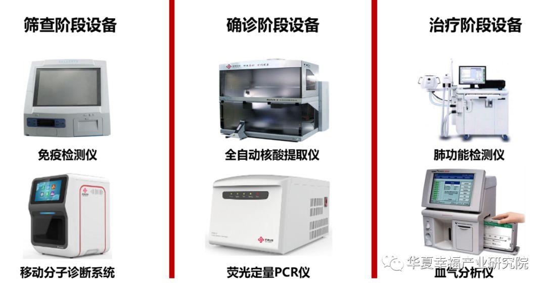 图1:新冠病毒筛查、确诊和治疗阶段用到的主要仪器设备