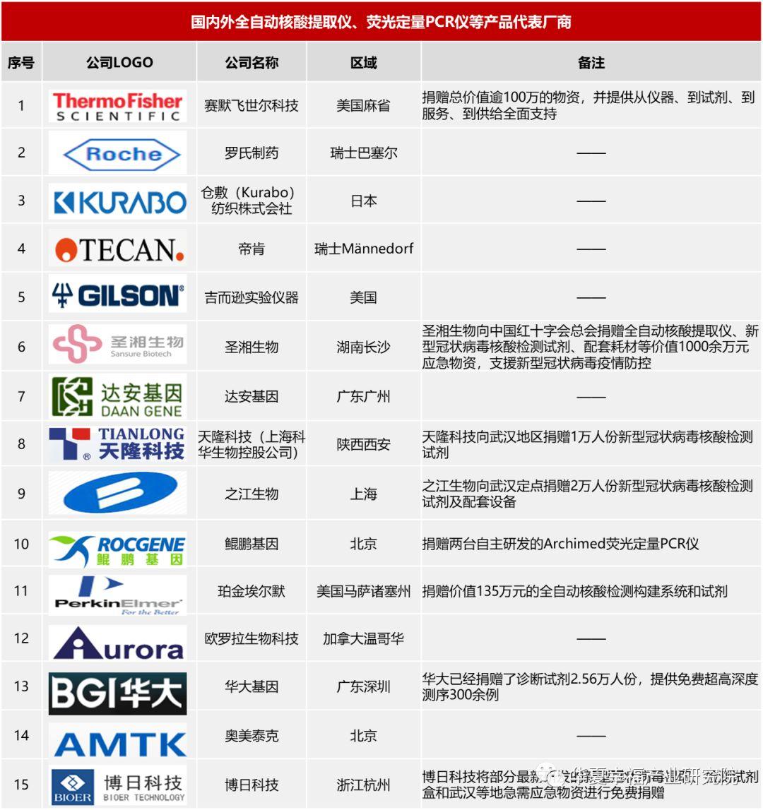 图3:新冠病毒检验检测仪器设备代表性制造商