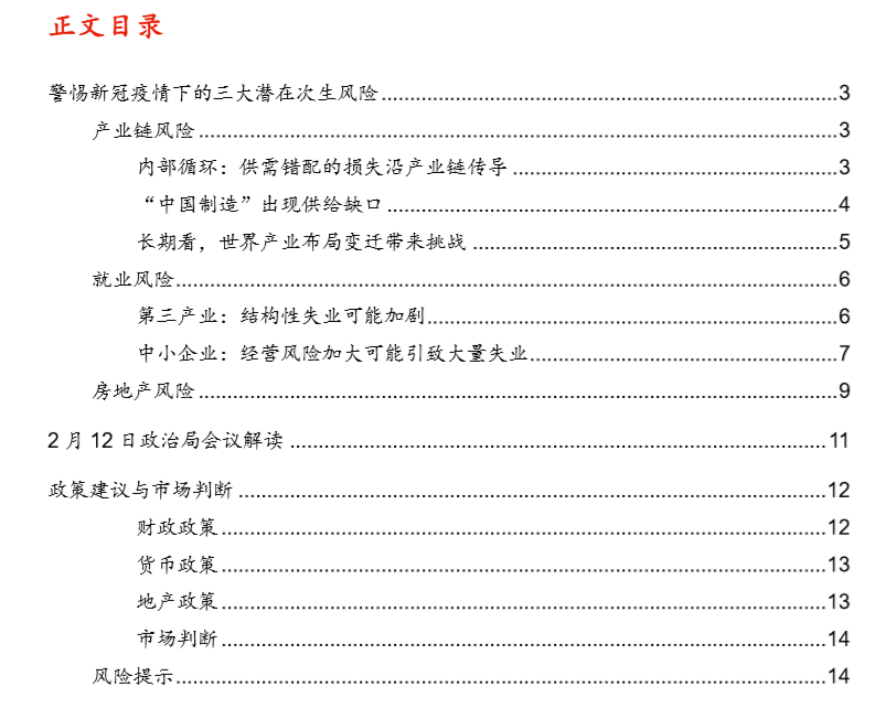 风险提示:复工潮下疫情进一步扩散,企业生产经营状况恢复缓慢。