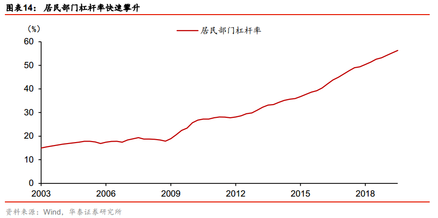 最后,居民端的偿贷压力可能也会成为房地产市场的潜在风险点。2008年以来,伴随着城镇化的加快推进和房地产市场的高速发展,居民房贷增长迅速,持续维持近20%的高增速。而这也成为居民杠杆率快速攀升的重要原因之一,2019年三季度末居民部门杠杆率高达56%,偿债压力大幅上升。而疫情冲击下,居民失业风险上升,收入面临下降压力,居民的偿贷能力弱化。尤其是2015年以来,棚改货币化导致三四线城市房价大幅上涨,三四线城市居民杠杆率上升更快,在失业率风险上升的背景下,三四线城市居民端的偿贷压力可能更大。
