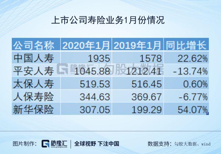 以寿险为上市主体的上市公司中,中国人寿1月原保费收入1935亿元,同比增长22.62%;新华保险原保费收入307.04亿元,同比大幅增长54.07%。