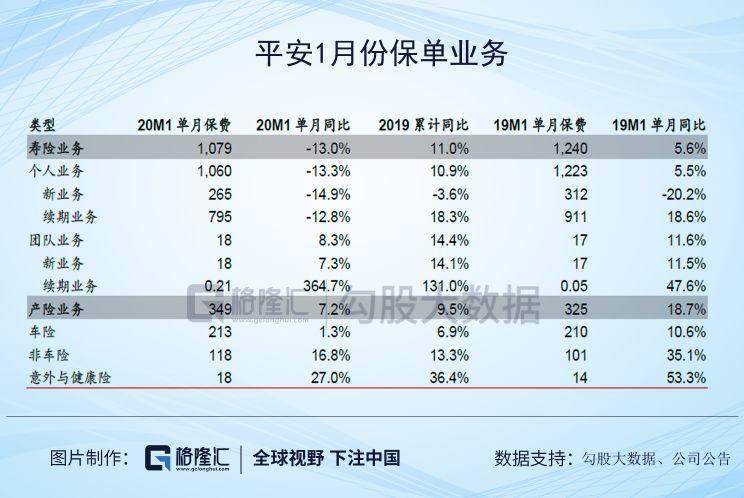 平安寿险1月新单出现负增长的原因主要是公司在2019年12月强调19年业务收官达成的重要性,实现2019年NBV增速5.1%,在2020年开门红阶段将部分新单保费指定在19年12月生效,带来2019年12月新单保费的爆发式增长(同比增长47.7%),使得2020年1月新单出现缺口;而续期保费出现负增长的原因是由于2015-2017年公司开门红超高增长带来的较多3/5年缴费期的保单在2019年缴费期已经结束,使得2020年续期保费出现缺口。