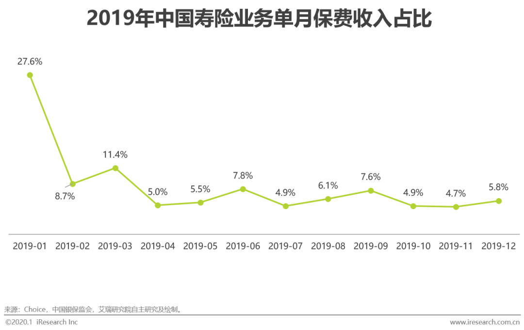 首先对于寿险业务,此次新冠疫情爆发的时期正处于各家保险公司“开门红”营销的关键节点,从2019年单月寿险数据可以看出,每年一季度的寿险保费能够占到全年寿险保费收入的近五成,而疫情防控期间代理人的线下推广活动已经基本暂停、银保渠道同样无法正常营业,这对一直依赖于线下面对面展业和签单的寿险业务是极大的冲击。