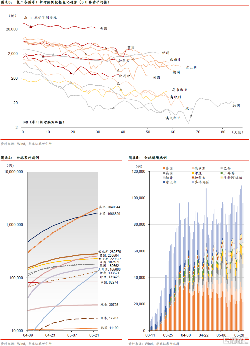 1、全球经济重启进程导致疫情反复。政府放松管控本身以疫情反复风险为代价,各国医疗卫生水平、居民自身生活习惯中存在的问题可能再次暴露,从而引致疫情的再次扩散。
