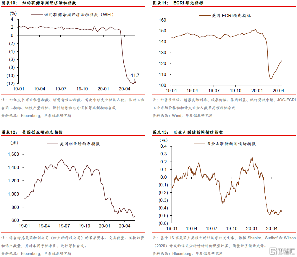 近日发达国家、新兴市场国家恢复状况继续分化。欧洲多国疫情持续趋缓,美国现有确诊重现下降趋势,而新兴市场国家疫情仍在扩散,世卫组织官员表示南美已成为新冠疫情的新“震中”。巴西新增病例升至约2万例/日水平,累计确诊升至全球第二位。在目前情况下,巴西部分城市的商业恢复计划可能带来疫情进一步扩散的风险。从各大主要城市的交通状况看,巴黎、柏林的经济重启进程仍处于领先地位,罗马的恢复速度在加快,美国、日本城市交通状况尚在低位徘徊。5.8-5.15当周美国ECRI领先指标继续回升,反映出经济预期的不断回暖,未来仍需观察实体经济供求状况。