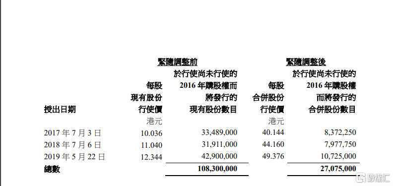 新世界发展(00017.HK)因股份合并调整尚未行使的购股权