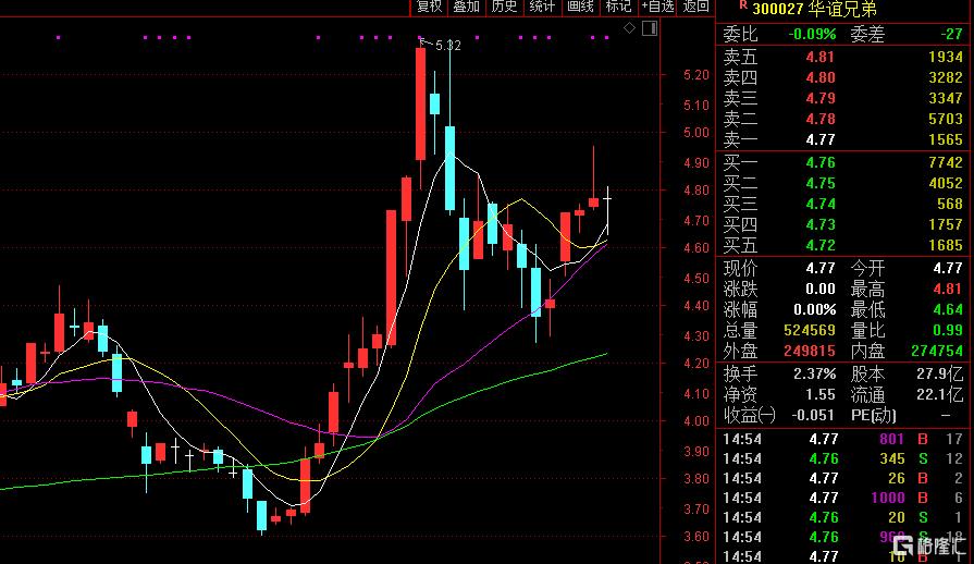 今日華誼兄弟股價漲停開盤,報5.25元,封單超27萬手。