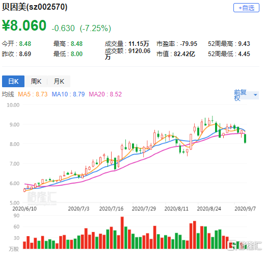 格隆汇9月7日丨贝因美(002570.SZ)现报8.06元,跌幅7.25%,最新总市值82.42亿。公司9月4日公告称,鉴于公司正在筹划非公开发行股票,为顺利开展非公开发行股票事宜,公司终止实施回购股份方案。根据回购方案,公司拟2.5亿元-5亿元回购股份,截至目前,公司以集中竞价交易方式累计回购828.63万股,约占公司总股本的0.81%,支付总金额为4600.62万元。