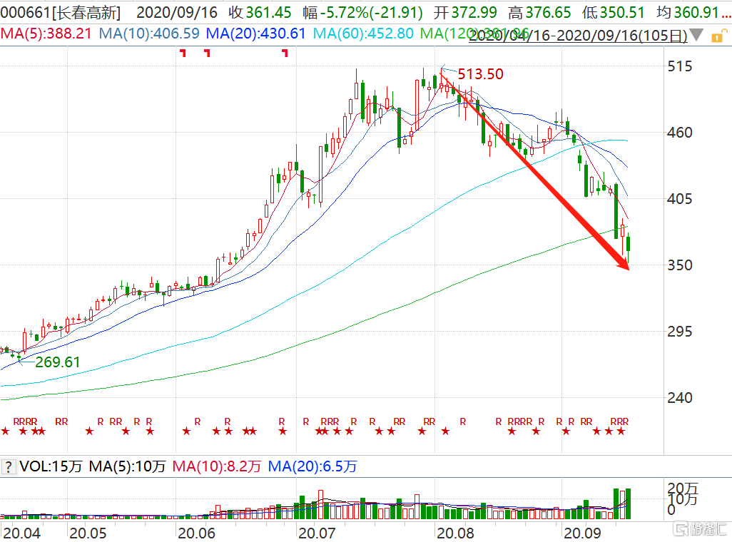 长春高新(000661.SZ)放量收跌5.72% 较历史高位已回调超30%