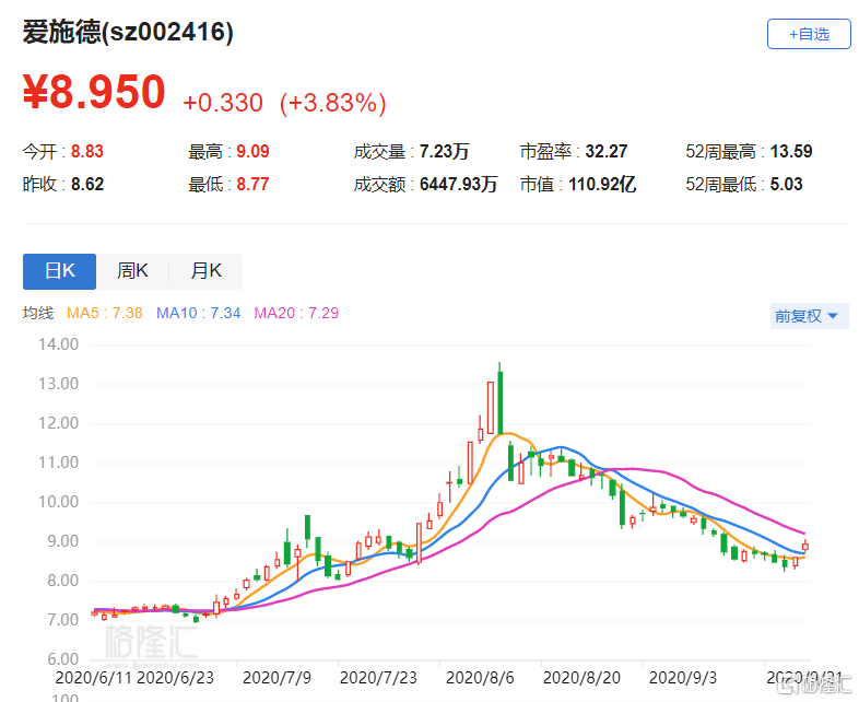 A股异动丨爱施德(002416.SZ)涨约4% 阿里巴巴承诺3年内不转让持有的公司股份
