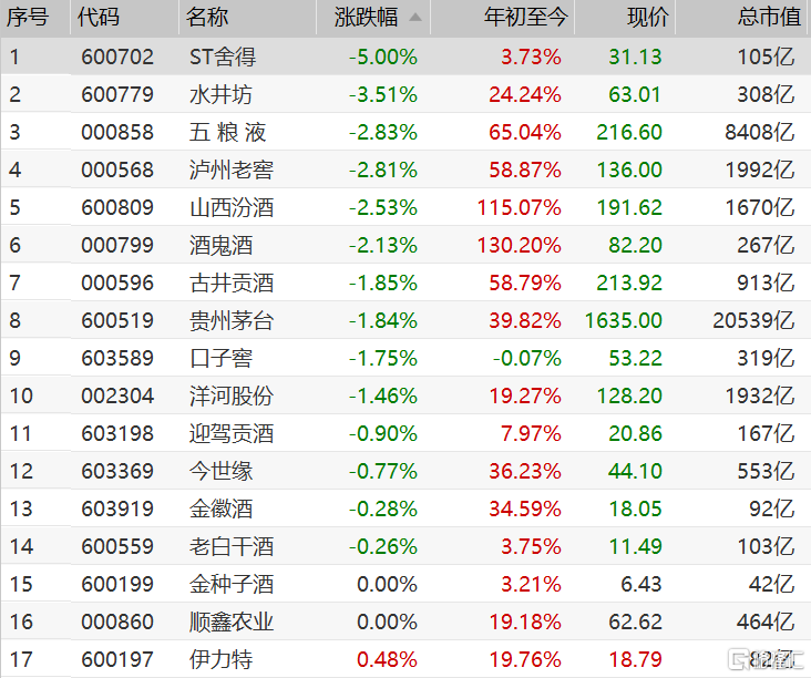 白酒股全线下跌!中纪委点名茅台、五粮液等酒企节前涨价