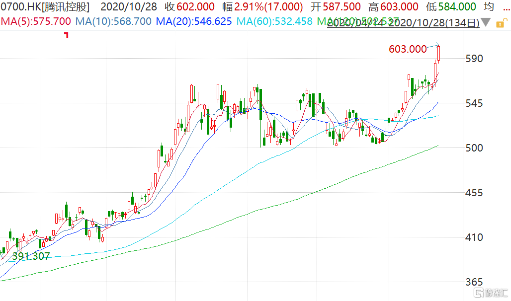 “最强蚂蚁概念股”!腾讯(0700.HK)首次突破600港元 市值逼近5.8万亿