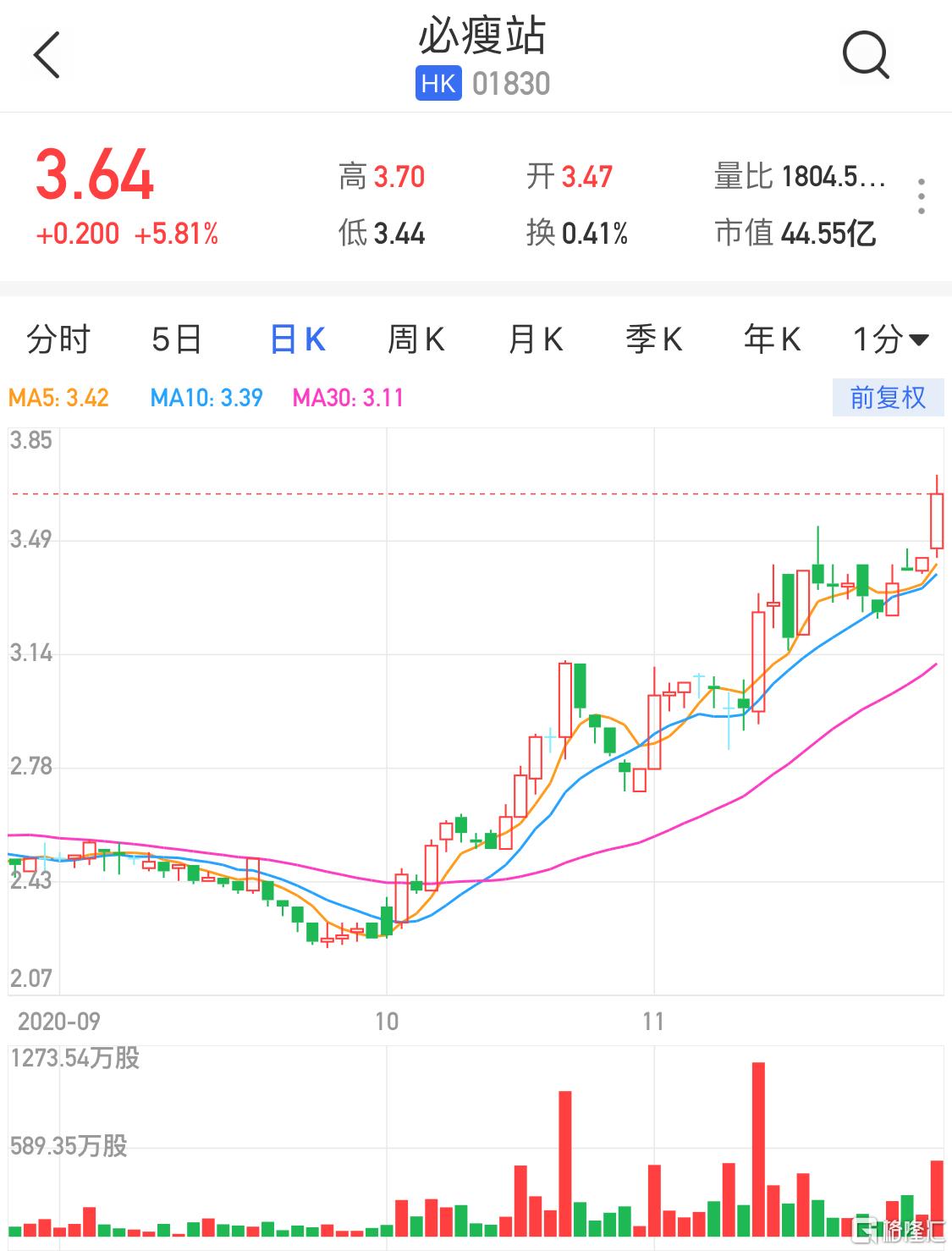 港股异动丨必瘦站(01830.HK)绩前抢跑 升近6%破顶 近2月累计涨60%