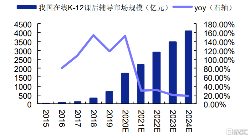 教育平板电脑,可以视做是普通平板电脑上搭载了教育系统和教育APP。手机、PC、普通平板电脑以及教育平板电脑,共同构成了智能教育尤其是在线教育的硬件载体。从在线教育的发展可以侧面看出旺盛的市场需求。2015 年-2015 年,我国在线 K12 辅导市场规模从 32 亿元增长到 670 亿元,复合年增长率高达114.7%,预计到2024 年将进一步增长到 4,072 亿元。而在2020年,疫情更是推动在线教育快速渗透,带来了更多的市场机会。