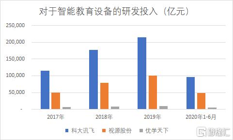 但这些技术含金量不高,并非真的难以替代。由于公司的营收体量较小,公司一直在研发上难以真正发力。科大讯飞、视源股份对相关产品的投入分别高达21亿元、10亿元,而优学天下的研发投入才9809万元,不到竞争对手的十分之一。研发投入掣肘了公司的产品的技术水平,影响了公司的竞争力。2017年-2019年,公司教育平板电脑产品的毛利率分别为36.84%、35.63%、36.66%;远低于同期科大讯飞相关板块的毛利率59.24%、58.08%、54.34%。公司的产品的定价能力,远低于科大讯飞。