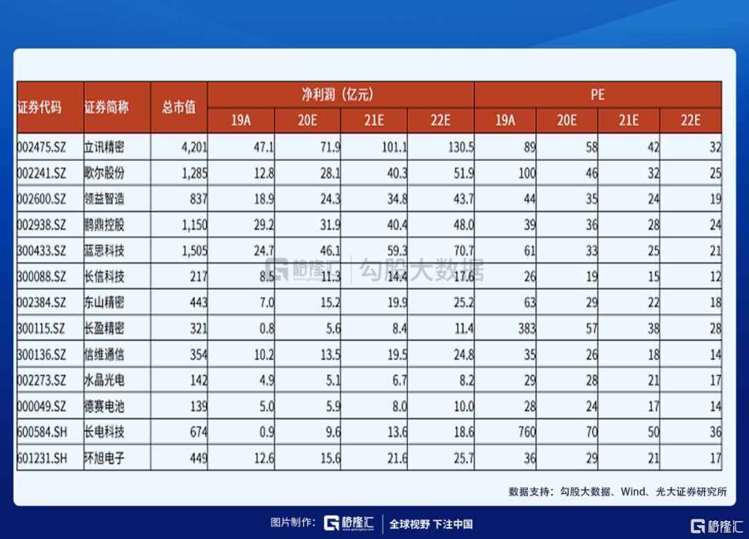 随着换机周期到来,供应链订单充沛,同时5G技术的采用使得公司产品在iPhone中单机价值量得进一步提升;除iPhone外,AirPods、Apple Watch等智能可穿戴设备也将成为公司近年来重要的增长点,未来软硬板有望两翼齐飞。