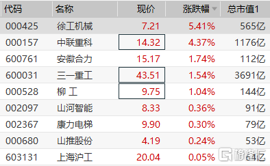 格隆汇2月25日丨工程机械板块走高,徐工机械涨超5%,中联重科涨超4%,安徽合力、三一重工、柳工等跟涨。