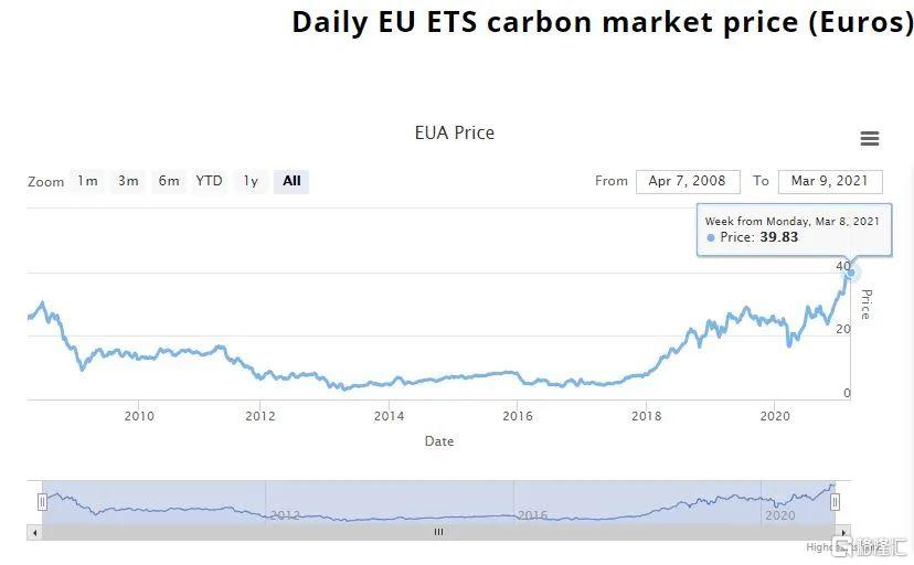 今日,欧盟碳排放许可上升到创纪录的40.9欧元。