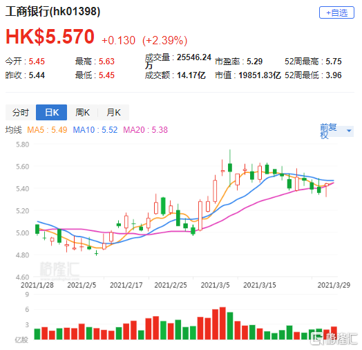 美银证券:工商银行(1398.HK)去年业绩胜预期 升目标价至6.6港元