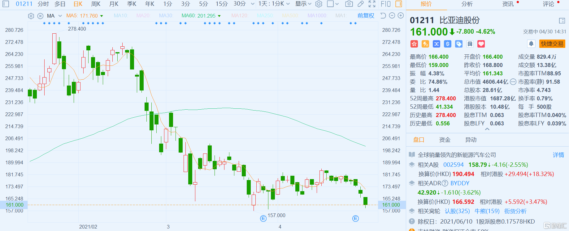 港股异动 | 比亚迪(1211.HK)未止跌 一季报不及预期 机构纷纷下调目标价