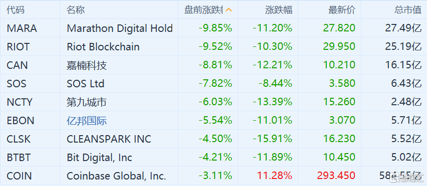 加密货币集体回调 美股区块链股盘前集体下跌