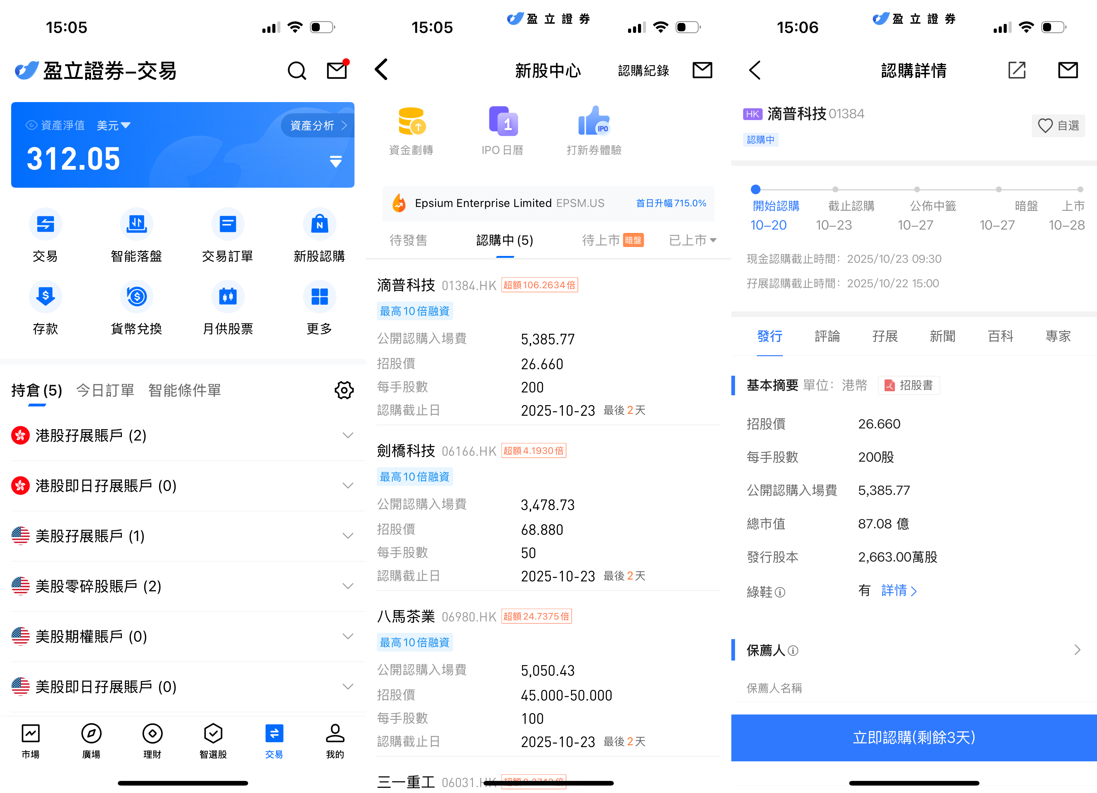 uSMART HK App 設有 IPO 中心,提供獨家優惠,客戶可在 App 即時認購公開發售之新股。登入 uSMART HK App 後,點選右下角「交易」,進入「新股認購」,選擇滴普科技後點擊「公開認購」,填寫認購數量並提交訂單即可。