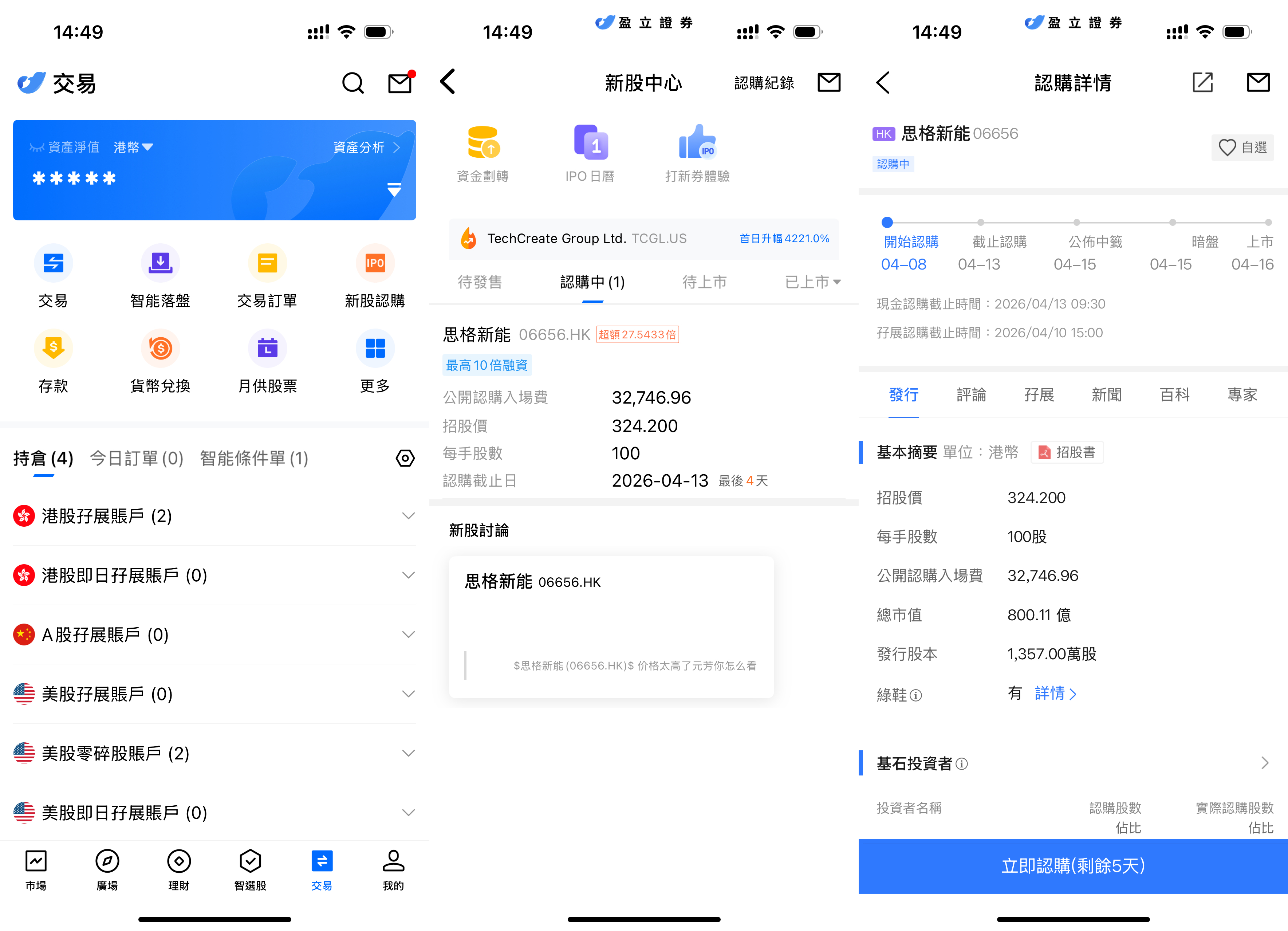 uSMART HK App 設有 IPO 中心,提供獨家優惠,客戶可在 App 即時認購公開發售之新股。登入 uSMART HK App 後,點選右下角「交易」,進入「新股認購」,選擇思格新能源後點擊「公開認購」,填寫認購數量並提交訂單即可。