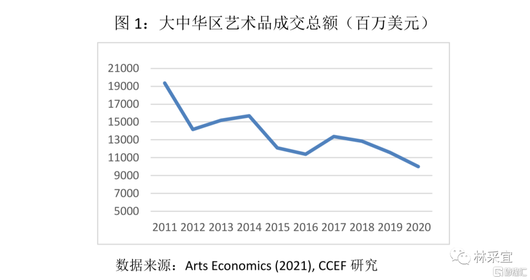 2011年以来,中国的艺术品交易市场进入下行周期,大中华区目前已成为全球最大的艺术品拍卖市场。