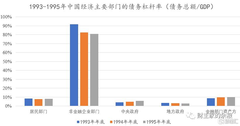 如果把1993年全中國實體經濟部門中的居民、非金融企業、中央政府和地方政府的負債額度全部加起來,大概也就相當於今天股市中(茅臺+工商銀行)總市值。