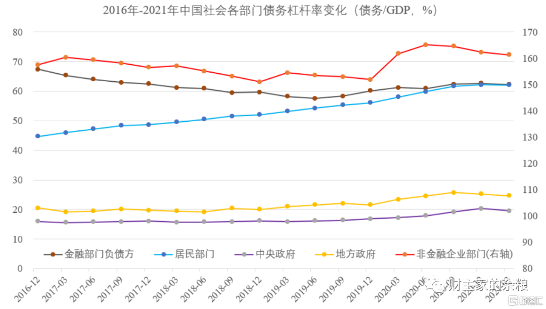 我們再來看社會各部門的債務槓桿率變化(見下圖)。