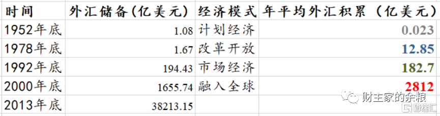 這個年平均外匯積累的表格,就是市場VS計劃、開放VS封閉的社會財富創造能力最直觀的對比。