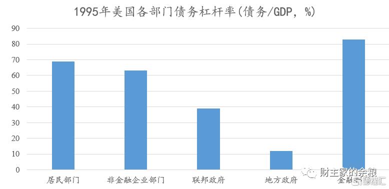 對比之下,1995年美國各部門的債務槓桿是下面這樣。