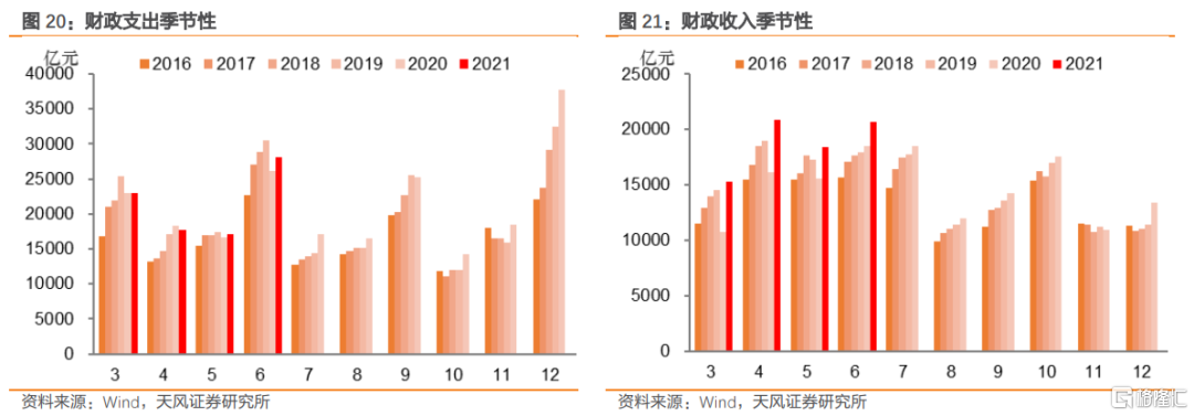 隨着經濟增長以及政府債券淨融資規模提升,財政存款規模呈現波動上漲的態勢,同時也呈現出明顯的季節性特徵。具體表現爲,每年1月、4月、7月和10月是繳稅大月,這使得財政存款呈現環比增加;而3月、6月、9月和12月是財政支出集中時期,財政存款呈現環比下降。