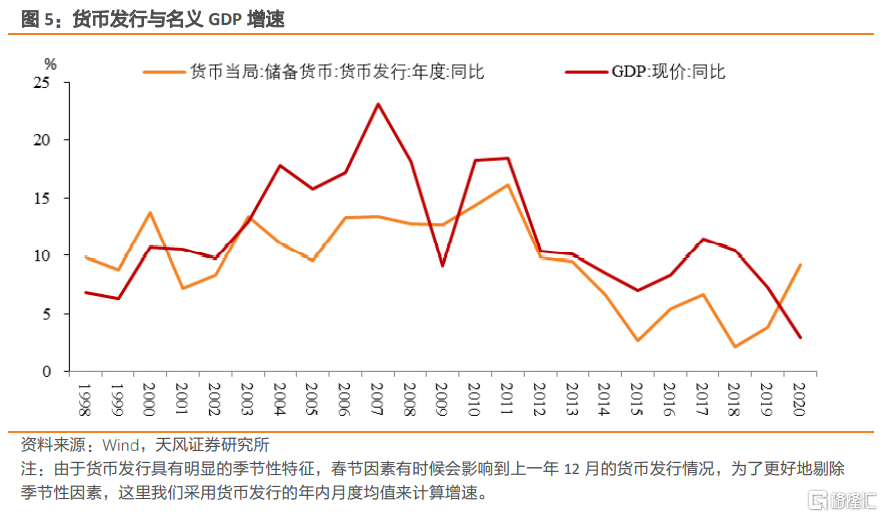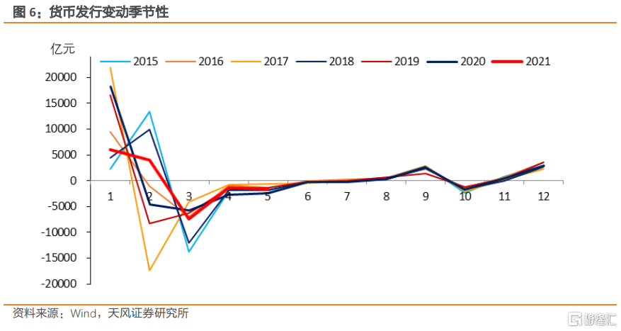 貨幣發行/M0還有明顯季節性。春節前由於居民有大額取現需求,貨幣發行/M0環比會有明顯增長;春節後隨着現金回籠,貨幣發行/M0環比會有顯著下降。