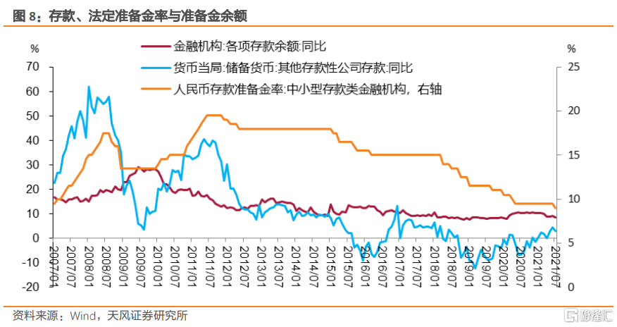 因此,在不考慮法定準備金率變動的情況下,經濟增長、信貸需求走強會對應派生出存款並帶動存款準備金規模提升,反之亦然。