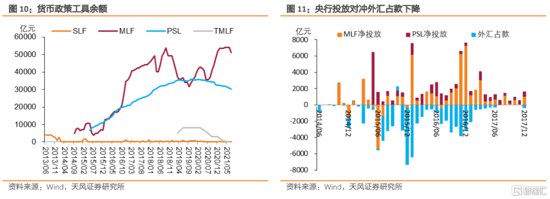 2015年之後,國際收支呈現新的格局,外匯佔款增長變少甚至開始減少,這是央行降低存款準備金的空間前提。與此同時,央行開始逐漸增加主動投放替代外匯佔款成爲基礎貨幣的主要投放渠道。