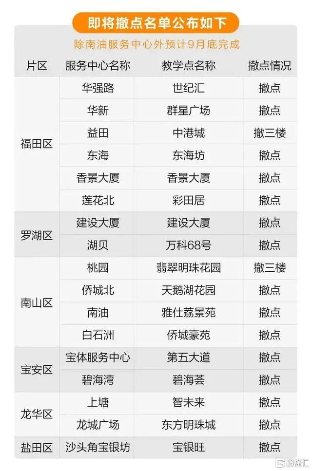 根據這則《通知》顯示,深圳學而思此次撤點的校區包括以下17個地點: