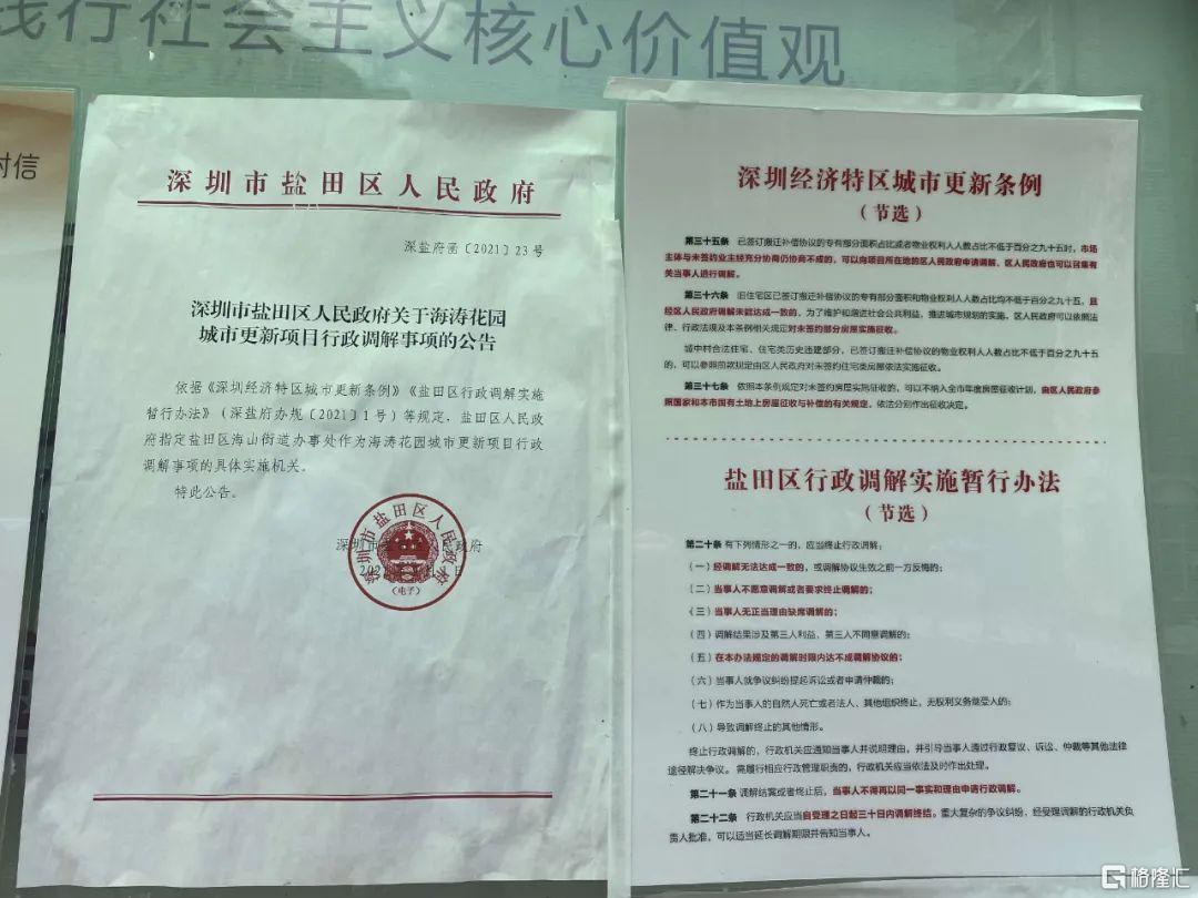 今年9月1日,深圳市鹽田區人民政府發佈關於海濤花園城市更新項目行政調解事項的公吿。
