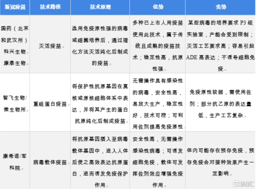(新冠疫苗技术路径对比,来源:Wind)