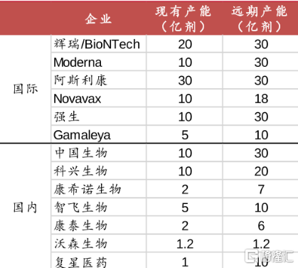 (全球新冠疫苗产能情况,来源:中泰证券)