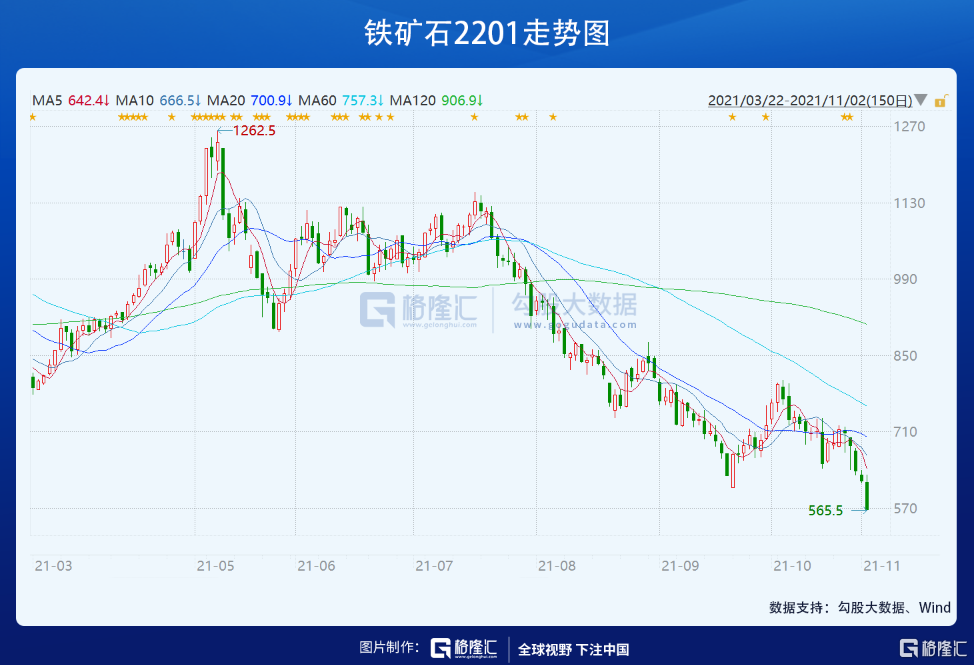 今年接下來的2個月,大盤應該不會有較好的行情,主要邏輯是經濟承壓,而貨幣政策上可能並沒有作爲。這裏,看一看鐵礦石的走勢(下遊是螺紋鋼,60%消費來源於房地產),感受一下經濟的溫度: